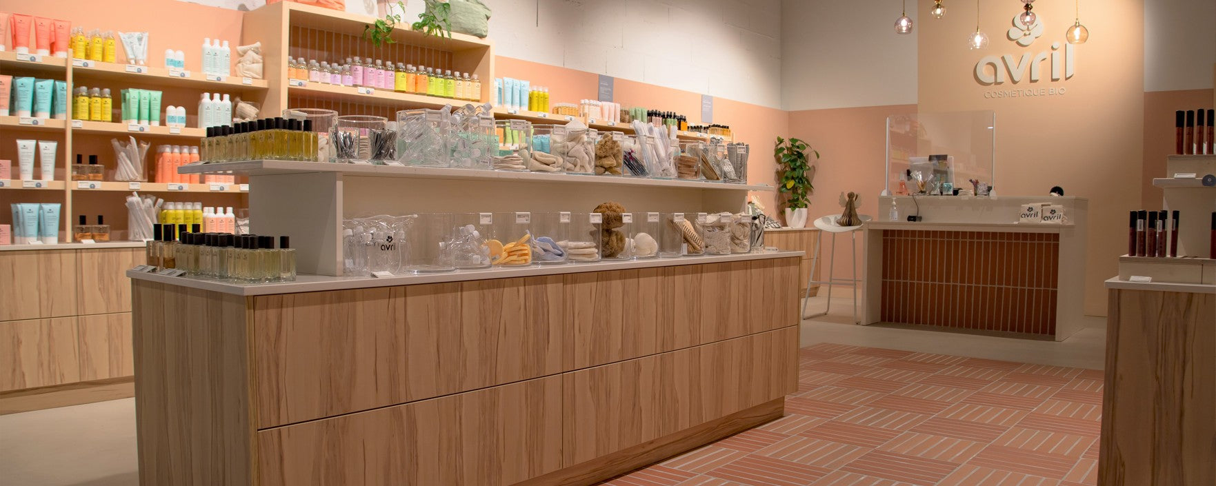 À l’entrée de Saint Malo, le centre commercial La Madeleine abrite une boutique à la devanture entièrement vitrée qui permet au regard de plonger dans son univers depuis l’extérieur. Jouant sur la profondeur et la grande hauteur de l’espace, l’atelier d’architecture 19 degrés a accentué cet effet de perspective par la mise en place de mobilier latéral de part et d’autre de la boutique et de deux îlots centraux, installés sur un tapis de tomettes. Écrin poudré et solaire faisant la part belle aux produits, le lieu associe les teintes douces aux matériaux naturels et bruts. Les meubles en bois et le soin particulier accordé à l’éclairage apportent la touche finale.